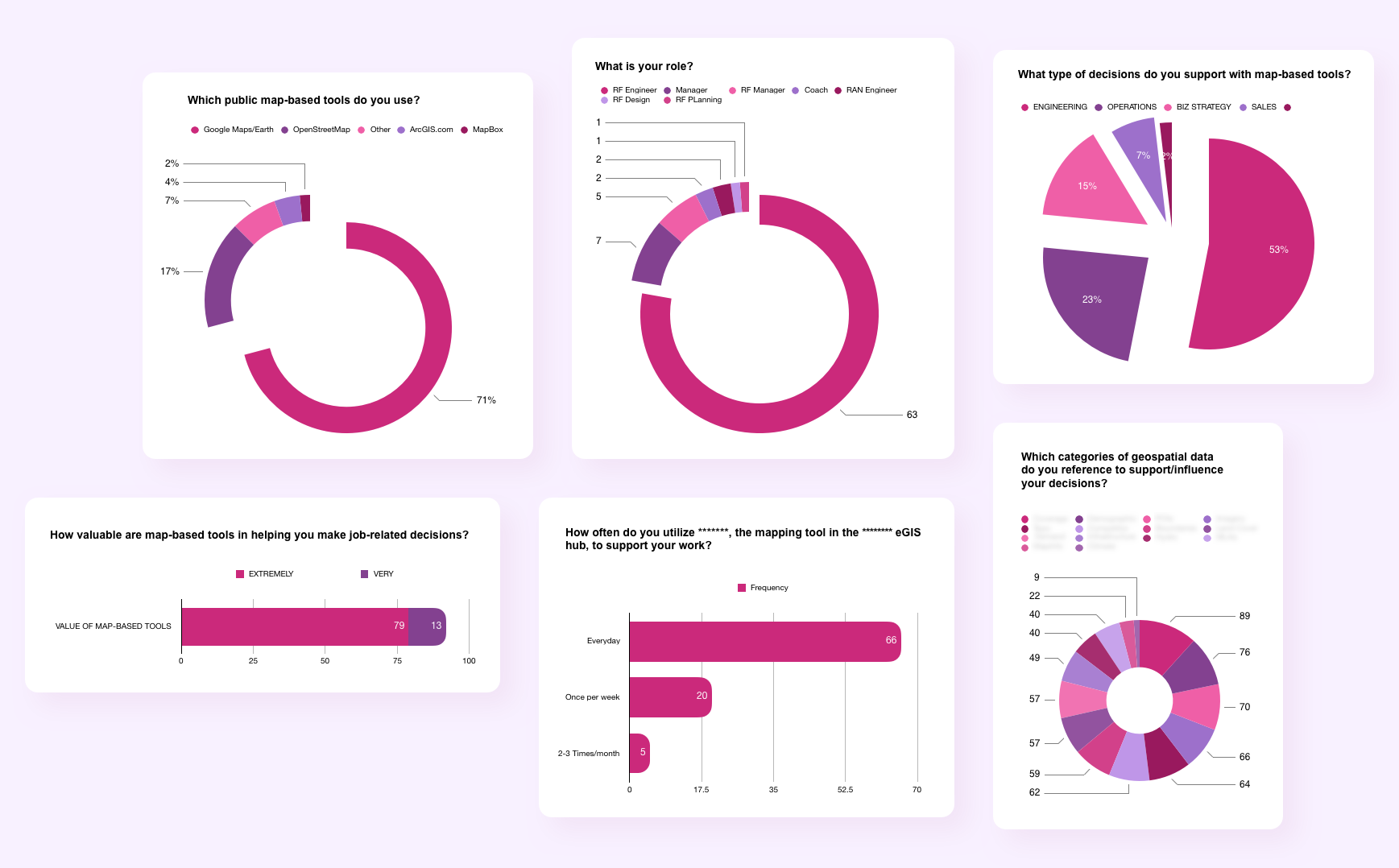 Establish which tools are being used throughout the organization for visualizing spatial data and determine users' satisfaction with their current tools/identify pain points.